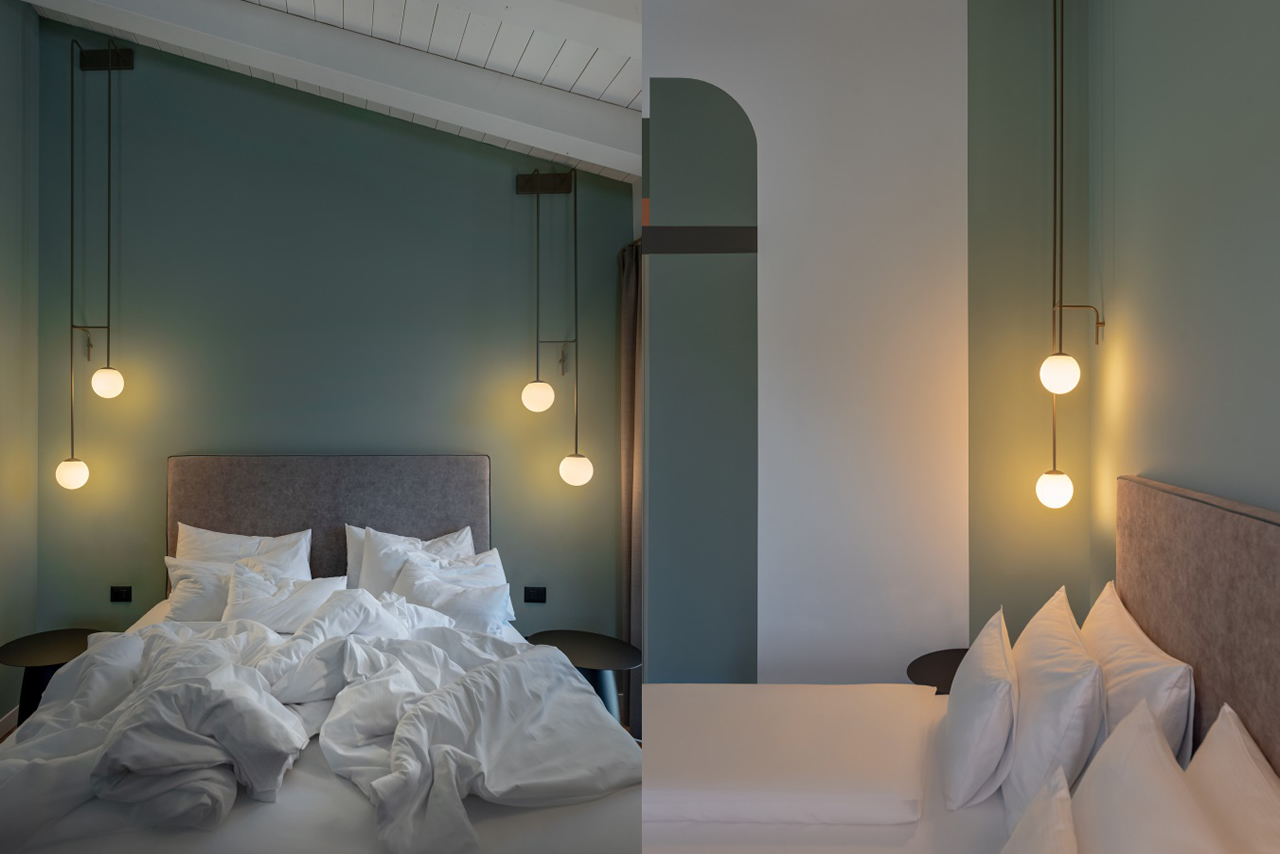 Partendo da Twin, sono state create diverse soluzioni custom e pensate ad hoc appositamente per il contesto delle camere dell’hotel che si sposano perfettamente con l’arredamento della stanza e l’architettura di tutta la struttura, per tramettere equilibrio e serenità agli ospiti e ai visitatori nel rispetto del design concept pensato per l’hotel.